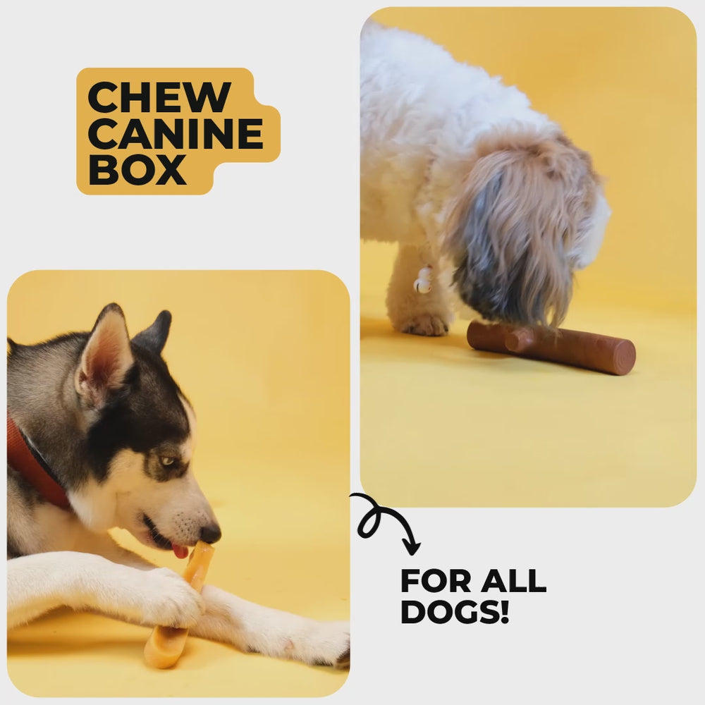 Our Chew Box is packed with durable chew toys designed to satisfy even the most enthusiastic chewers and help them calm down.