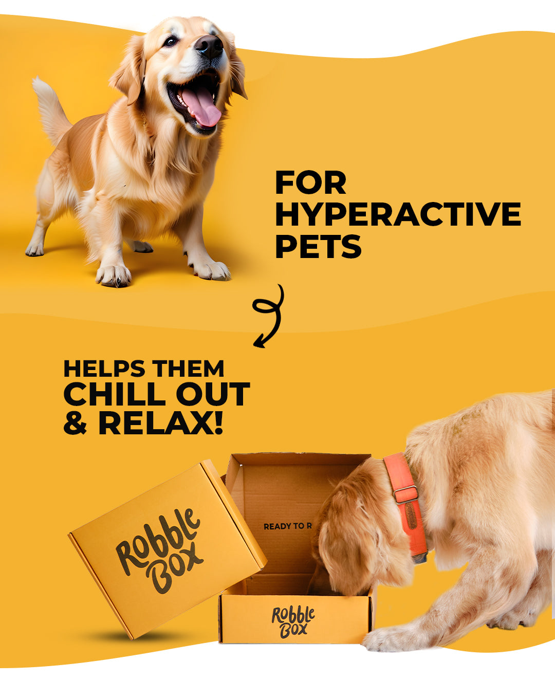So, if your dog is all about zoomies and ceaseless activity, give them the gift of relaxation with our Calm Box. It's time to turn their hyperactive moments into peaceful ones!