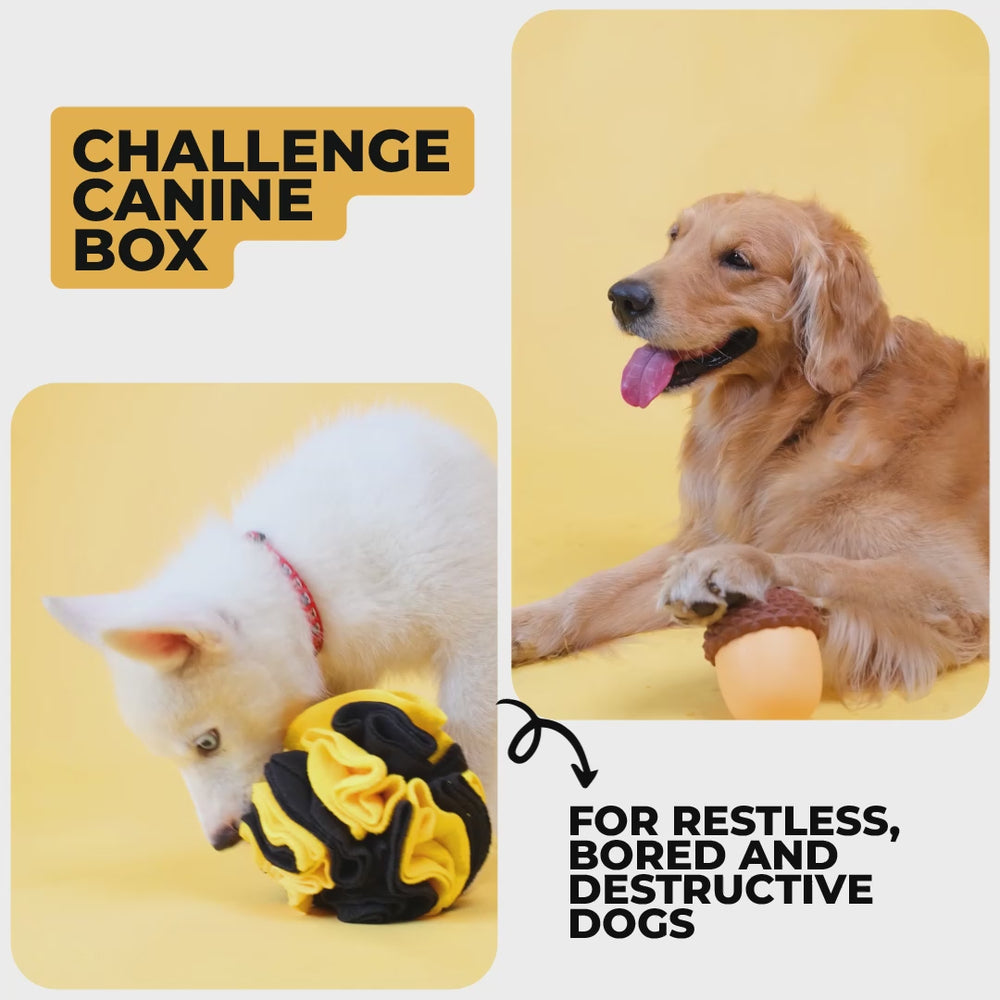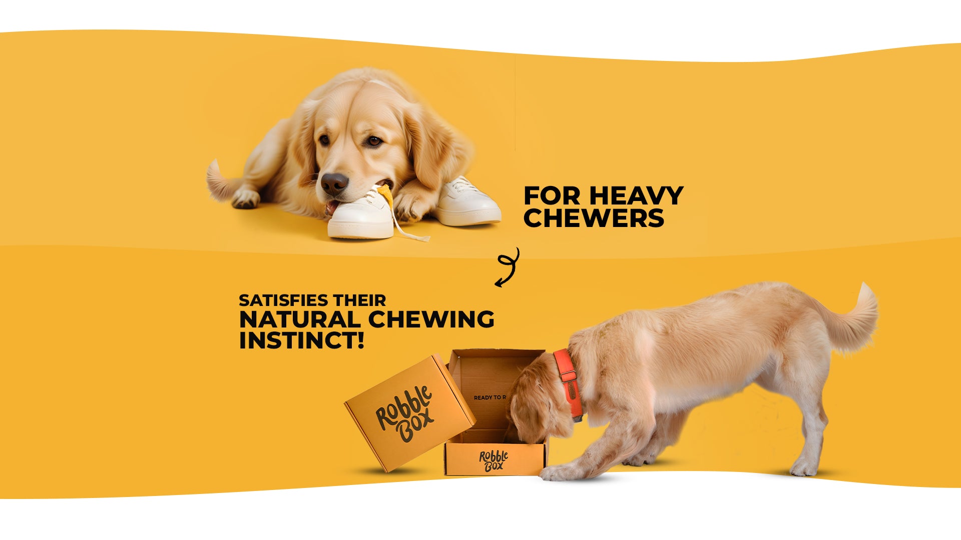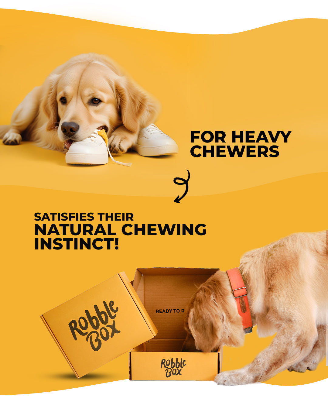 Our Chew Box is packed with durable chew toys designed to satisfy even the most enthusiastic chewers and help them calm down.